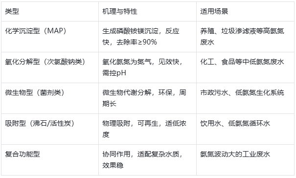 功能多樣:部分類(lèi)型兼具去除 COD、脫色功效,微生物型還能改善水體生化環(huán)境。